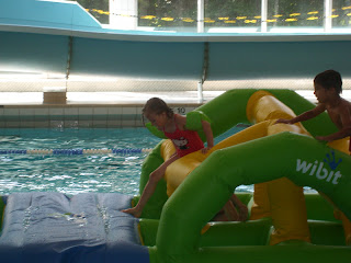 Robert lyckades övertala Felizia att leka och klättra i stora poolen