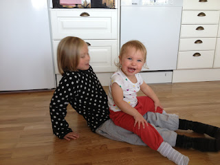Som vanligt när Robert jobbar så var Jazmine hos morfar och Lena. Hon hade ätit frukost nummer två när Valle åt sin nummer ett (han är också där samma lördagar som J), lekt och busat lite inne innan de gick ut. Sedan var vi kvar ute och lekte till det var lunchdags.